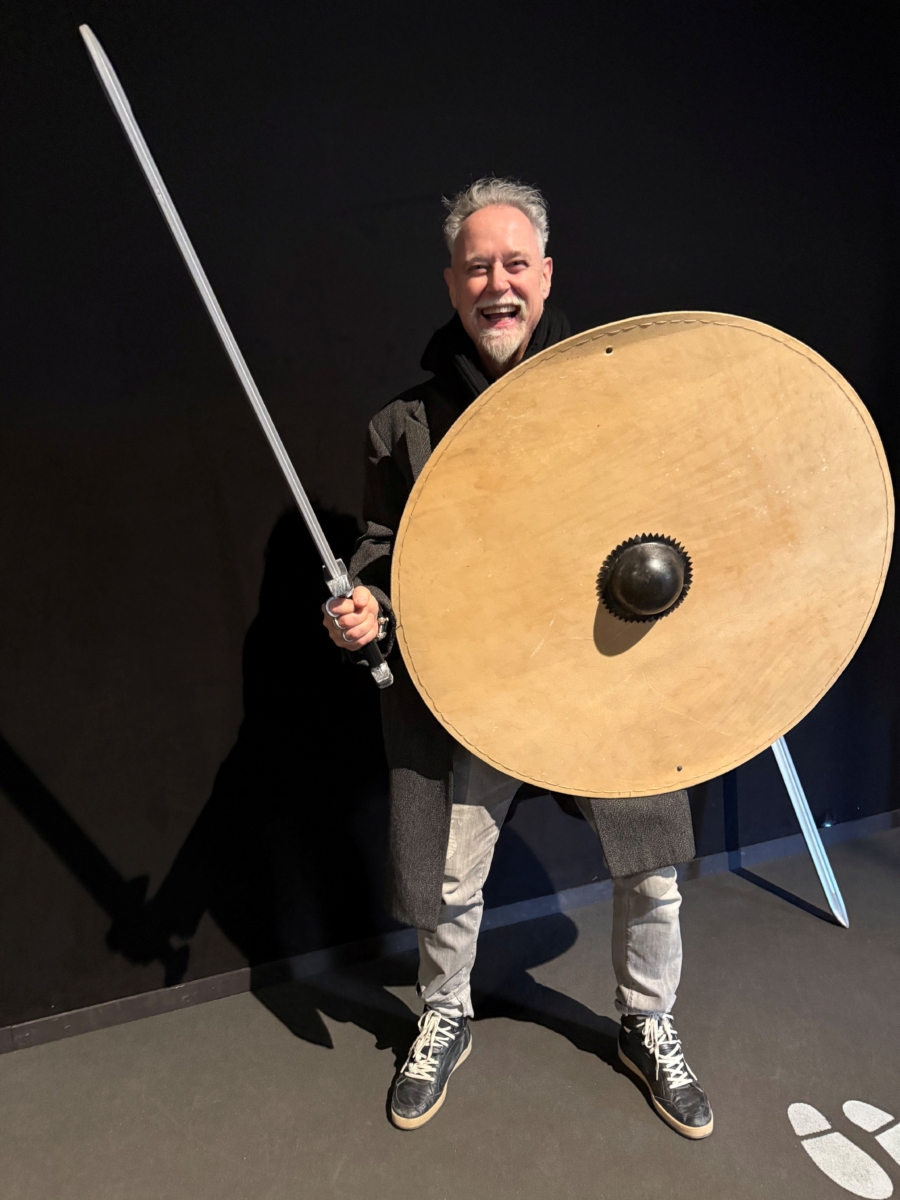 Doch damit nicht genug mit dem Gartnerschen Kultur-Programm in Hamburg. Heute stand noch der Besuch der Ausstellung “Vikings-Entdecker und Eroberer“ auf dem Programm. Das immersive Abenteuer durch Zeit und Legende sorgt mit Hilfe modernster Technologie für viel Information über die Welt der Wikinger. Dazu ein herzliches ,,Sael!“, wie die Nordmänner zu sagen pflegten. Was so viel bedeutet wie „Seid glücklich oder gesegnet“. Ich war dermaßen begeistert von der historischen, männlichen und kampferprobten Skandinavien-Welt, dass meine Gattin nur unter Androhung schwerwiegender Konsequenzen meinen Kauf eines Schwertes und eines Wikinger-Schildes verhindern konnte. Wie immer hatte Frau Gartner recht. Es wäre wohl auch schwierig geworden mit den Waffen durch die Sicherheitskontrolle am Flughafen zu kommen.